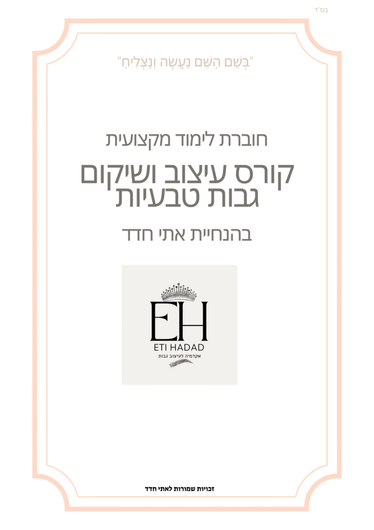 🎉 מבצע השקה מיוחד – ל־10 הנרשמות הראשונות בלבד!לרגל פתיחת 2 מחזורי הקורס הראשונים, אני מציעה לכן הזדמנות חד־פעמית להצטרף ל־קורס עיצוב ושיקום גבות במחיר היכרות מיוחד – עלות בלבד.זו ההזדמנות שלך להבטיח מקום בקורס מקצועי, פרקטי ומבוקש, בהשקעה נמוכה במיוחד – ולקבל את כל הכלים להפוך את האהבה ליופי למקצוע בידיים.